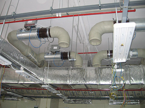 5) 實驗室風(feng)管在選擇防腐(fu)蝕較好(hao),硬度高的材質。本(ben)工程涉及(ji)到所(suo)有(you)風(feng)管均(jun)可采用防腐(fu)蝕性能好(hao)的PVC/UPVC材質,風(feng)機全(quan)部(bu)為腐(fu)蝕性能好(hao)的玻璃鋼風(feng)機。